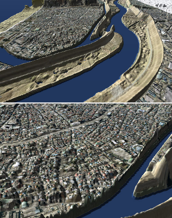 数値地図5mメッシュとDET社のオルソ航空写真を組み合わせた。