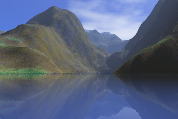 次期バージョン搭載予定の地形エディタで生成した架空の地形です。地形エディタでは数値地図も自由自在に変更できます。