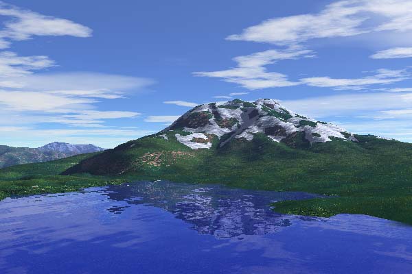 残雪を描くには、風景の設定の「雪」で、雪の傾斜角の範囲を例えば20度から40度くらいの範囲にします。通常は0度以上になっていますが、残雪の場合は傾斜のある程度あるところに付ける方がリアルです。