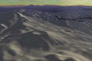 雪と崖のマテリアルに[ハイライト成分]を付加しました。照かりなどが表現できますが、若干計算時間が伸びますので、不要な場合は、[ハイライト成分]をOFFにしてください。