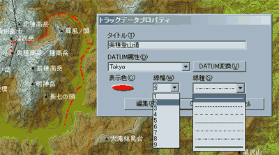 地名のリスト、湖のリスト、GPSエディタ、リンク一覧、などで、選択されている項目を地図上でブリンクさせるようにしました。 ブリンクさせたくないときは、[表示]-[表示の設定]の[画面表示]のページで、[選択オブジェクトをブリンクさせる]のチェックをはずしてください。 |