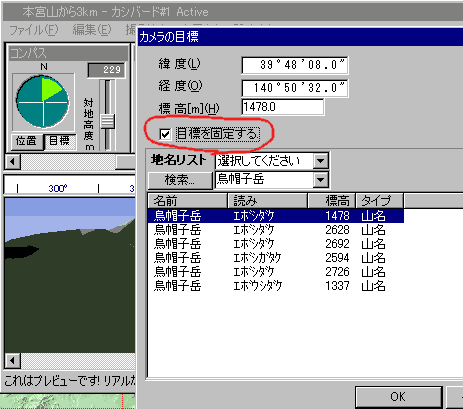[設定]-[目標の設定]で[目標を固定]にチェックを入れると、カシバードの動きが常に目標を中央に捉えるようになります。なお、目標固定中でもカメラを強制的に動かすことはできます。 | |