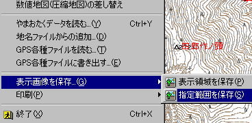 [ファイル]-[表示画像の保存]-[指定範囲の保存]で指定範囲をビットマップファイルに保存できます。なお指定範囲は直前に指定したものを再使用できます。 | |