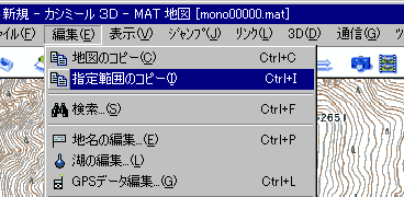 [編集]-[指定範囲のコピー]でできます。従来のコピーは[地図のコピー]を使用してください。なお指定範囲は直前に指定したものを再使用できます。 | |