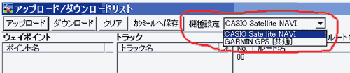 カシオのGPS時計『Satellite Navi』からランドマーク、ウェイポイント、トラックデータのダウンロードとアップロードができます。![]() [通信]-[アップロード/ダウンロードリスト]の中で、機種設定してください。 なお、GPS時計とカシミールではデータ名称が以下のように異なりますのでご注意ください。