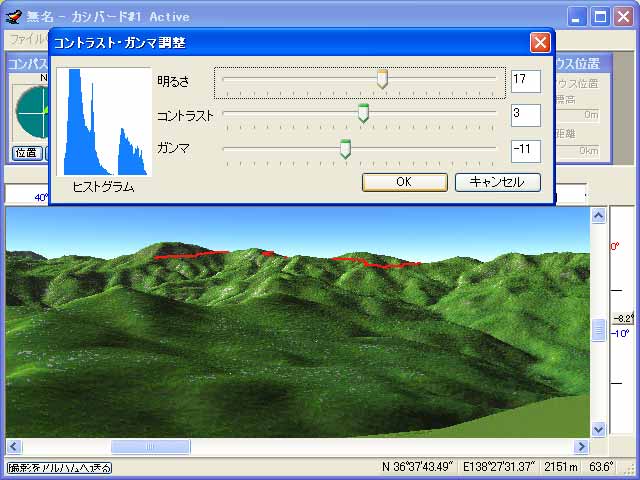 撮影後の画像に対して[編集]メニューの[コントラスト・ガンマ調整]で調整が可能です。輝度のヒストグラムも表示します。