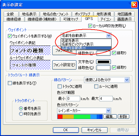 地図上にウェイポイントの名を表示させるときに自動選択モードを追加しました。