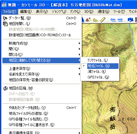地名ファイルなどや表示設定を地図毎に記憶し、切り替えた際に再現できるようにしました。追加したメニューは以下の通りです。