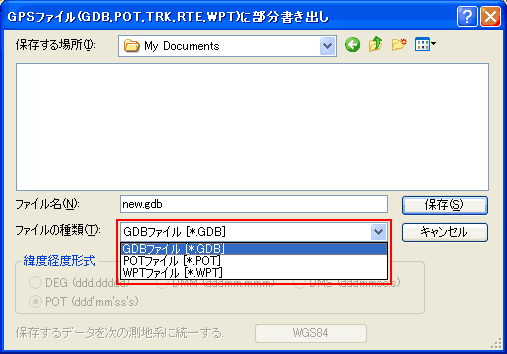 [GPSファイルへの書き出し]メニューでGDBへの部分出力可能にした。