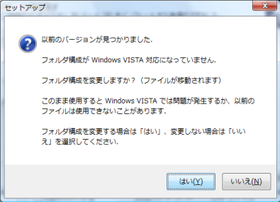 インストール開始後に、以前のバージョンを検出すると、フォルダ構成の変更をするかどうかを聞いてきます。