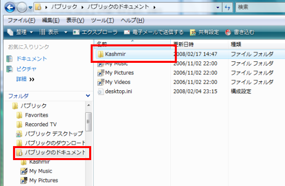 デスクトップ→パブリック→パブリックのドキュメント→Kashmir