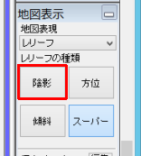 [地図表示]パネルから、[レリーフの種類]を[陰影]に変え、[標高の強調]を[なし]に設定してください。