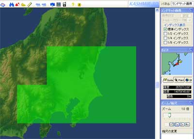 TM画像に北海道地図の10mメッシュを合成(平15、総使第140-208号)。