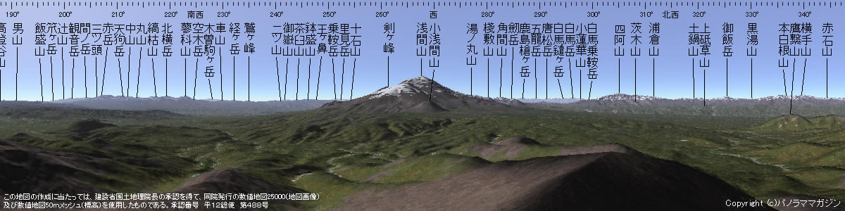 | ■御嶽山 | 3067m | 119.5km | 241.6度 |