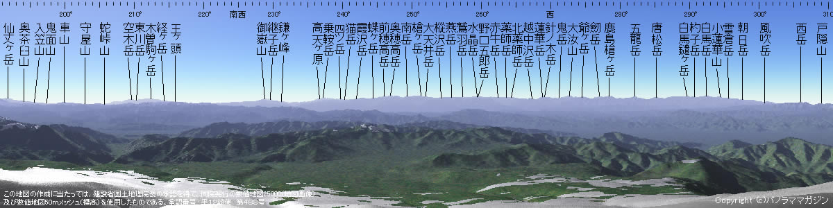 | ■御嶽山 | 3067m | 109.8km | 228.7度 |