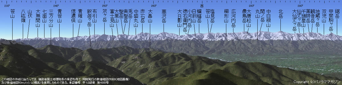 | ■赤石岳 | 3120m | 52.3km | 257.7度 |