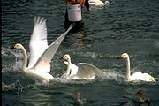 松本・犀川での白鳥です。この日の白鳥は旅立ちを前に落ちつきがありません