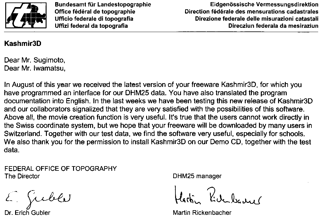 今年の8月に、貴殿がDHM25データ用のインターフェイスをプログラムしてくださった、カシミール3Dの最新バージョンを受取ました。また、貴殿は