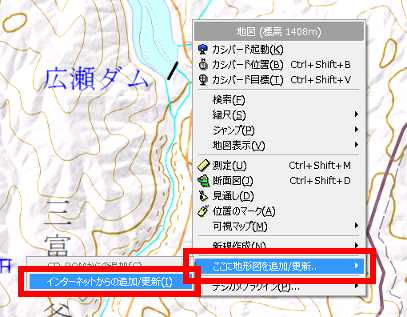 A.なんらかのエラーで地図や標高が部分的におかしくなった場合は、その上で右クリックし、[ここに地形図を追加/更新]−[インターネットから]を実施してください。下記参照。 Q.タイルマッププラグインを用いて作成した画像を公開してもいいですか?