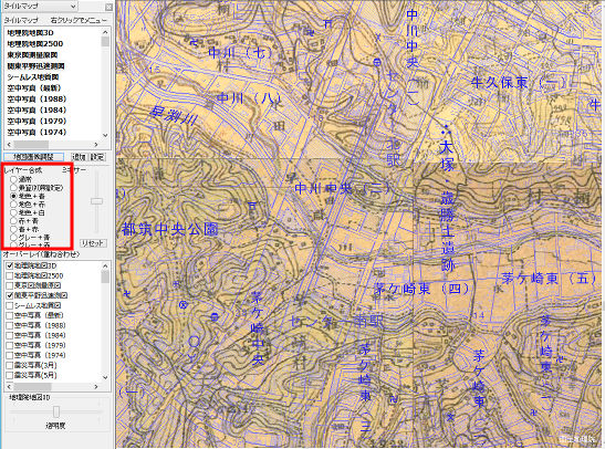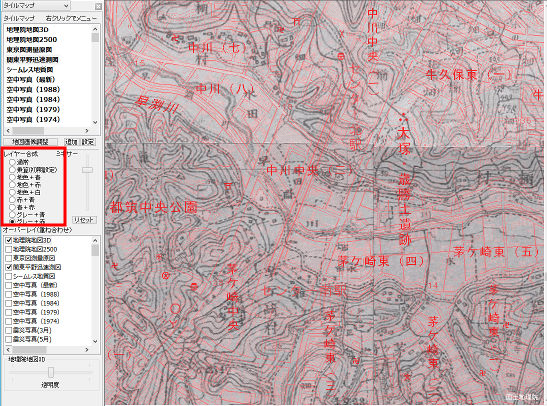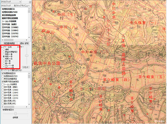 - 「地理院地図2500」に「東京図測量原図」を重ねる