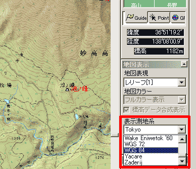 いままでの日本測地系(TOKYO)で表示
