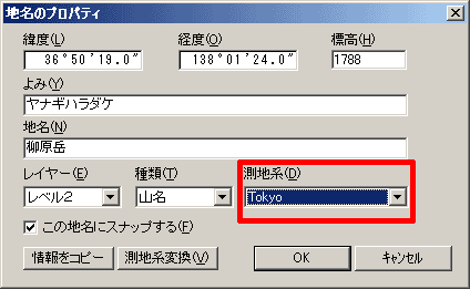これを可能にしているのが、地名やGPSデータのプロパティにある、[測地系]の設定です。